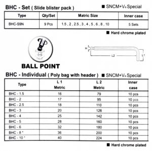Ball Point Color Hex Key Wrench (BHC)