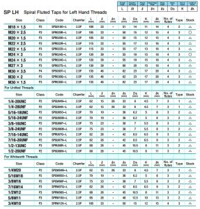 Spiral Fluted Taps for Left Hand Threads (SP LH)