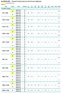 Thread Forming Taps for Non-Ferrous Materials (N+RS/N-RS)