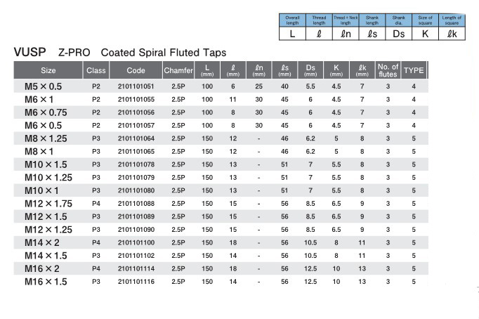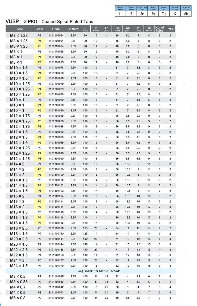 Z-PRO Coated Spiral Fluted Taps (VUSP)